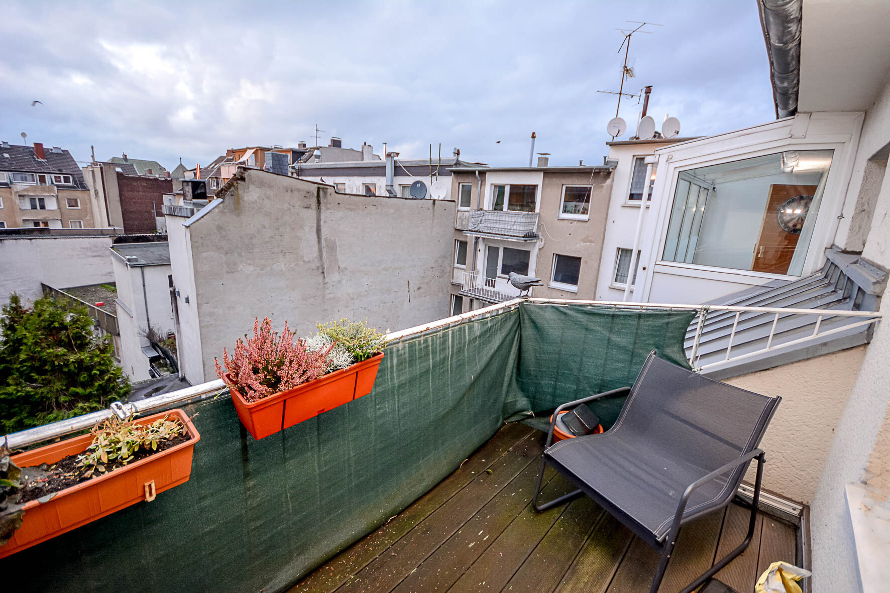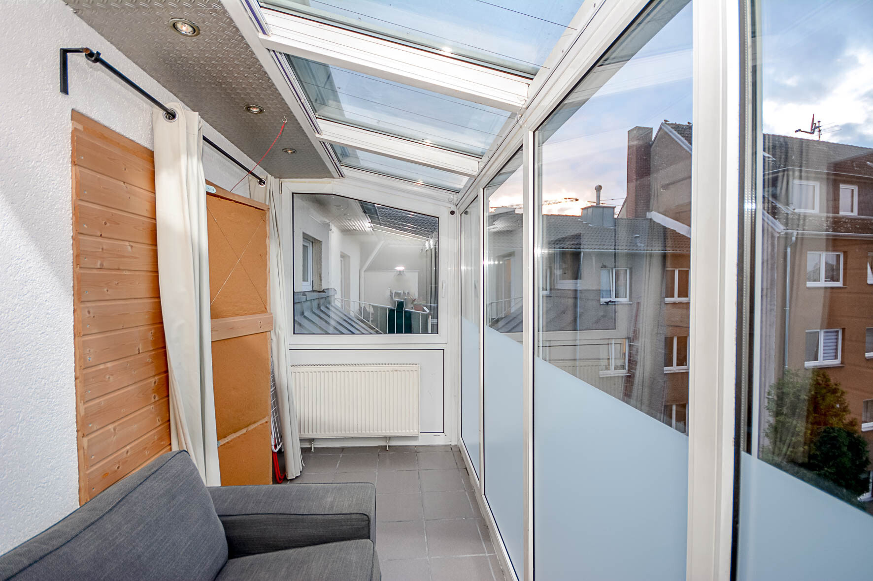 Diese herrlich lichtdurchflutete 2-Zimmerwohnung in der obersten Etage eines gepflegten 7-Parteienhauses in Köln-Mülheim begeistert mit einem durchdachten Grundriss und besonders vielseitigen Außenbereichen. Beim Eintreten empfängt eine einladende Diele, die dank eines separaten Abstellraums direkt praktischen Stauraum bietet. Die Küche ist angenehm vom Wohnbereich getrennt und verfügt über einen eigenen Zugang zu einem der zwei Balkone. Das großzügige Wohnzimmer bildet das Herzstück der Wohnung: hell, freundlich und mit direktem Zugang sowohl zum Wintergarten als auch zu einem weiteren Balkon. Das große Schlafzimmer bietet nicht nur viel Ruhe und komfortable Stellflächen, sondern ebenfalls einen Zugang zum Balkon. Abgerundet wird die Wohnung durch ein funktionales Duschbad.