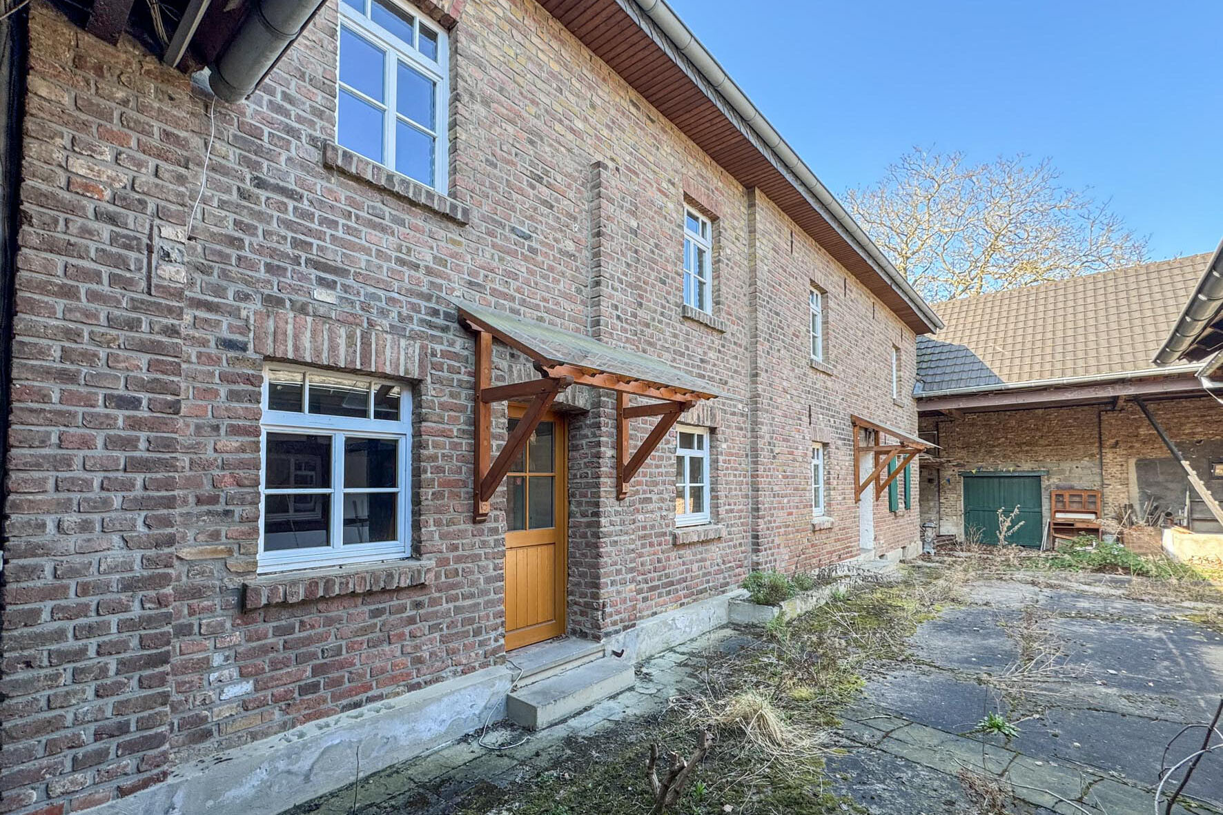 Diese charmante Hofanlage befindet sich in Bornheim-Hemmerich. Bornheim ist eine beliebte Stadt zwischen Köln und Bonn. Das Mehrfamilienhaus erstreckt sich über eine Grundstücksfläche von ca. 912 m² und bietet eine vielseitige Nutzungsmöglichkeit. Es umfasst insgesamt vier separate Einheiten: ein großes Wohnhaus (Wohnung 1, linkes Gebäude), zwei weitere Wohnungen (Wohnungen 2 + 4) sowie eine Büroeinheit (Einheit 3), alle im rechten Gebäude. Die Gesamtwohnfläche beträgt etwa 244 m², während das Büro eine Nutzfläche von ca. 39 m² aufweist.