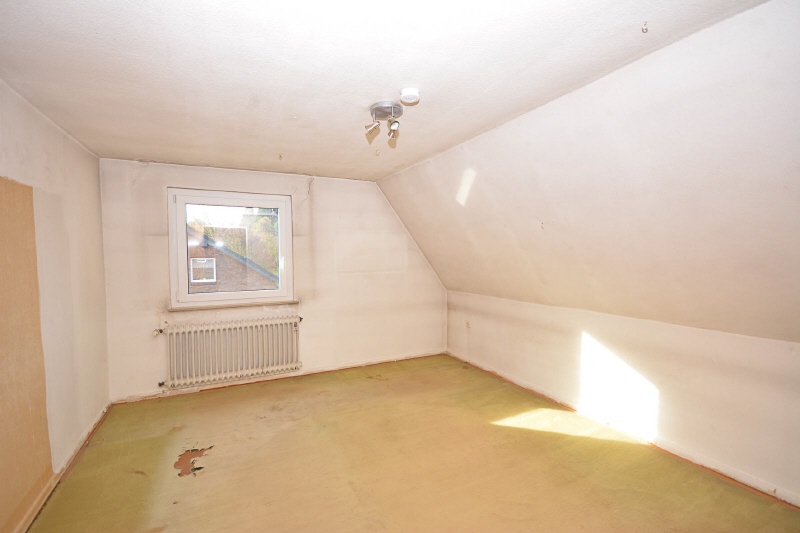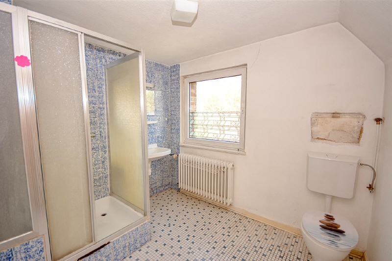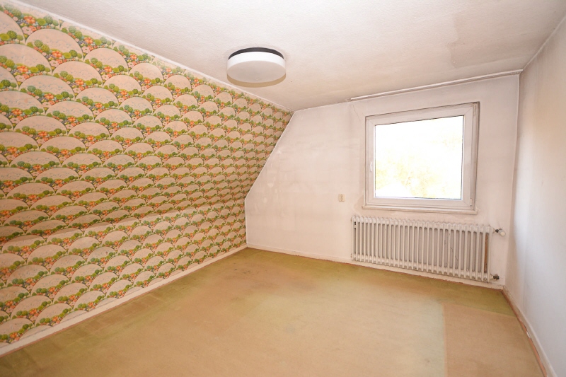 Dieses freistehende Einfamilienhaus wurde im Jahr 1953 in solider Massivbauweise errichtet und bietet dank seiner klassischen Aufteilung viel Raum für individuelle Gestaltungsmöglichkeiten. Im Erdgeschoss empfängt Sie eine Diele mit angrenzendem Flur, von dem aus alle Räume bequem erreichbar sind. Das großzügige Wohnzimmer mit einer Fläche von knapp 30 m² bildet den Mittelpunkt des Hauses und bietet vielfältige Nutzungsmöglichkeiten. Ergänzt wird das Erdgeschoss durch ein separates Esszimmer, eine Küche sowie ein Wannenbad.