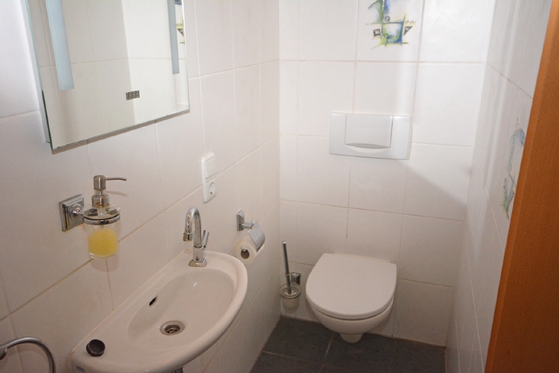 Im Erdgeschoss bildet das offen gestaltete Wohn- und Esszimmer den Mittelpunkt des Hauses. Großzügige Fensterflächen schaffen helle, freundliche Räume und verbinden das Innere harmonisch mit dem Garten. Dieser präsentiert sich als grüne Oase – liebevoll angelegt, natürlich gewachsen und ideal, um die Ruhe zu genießen oder gemeinsame Stunden im Freien zu verbringen. Eine separate Küche, ein Gäste-WC und die einladende Diele runden das Erdgeschoss perfekt ab.