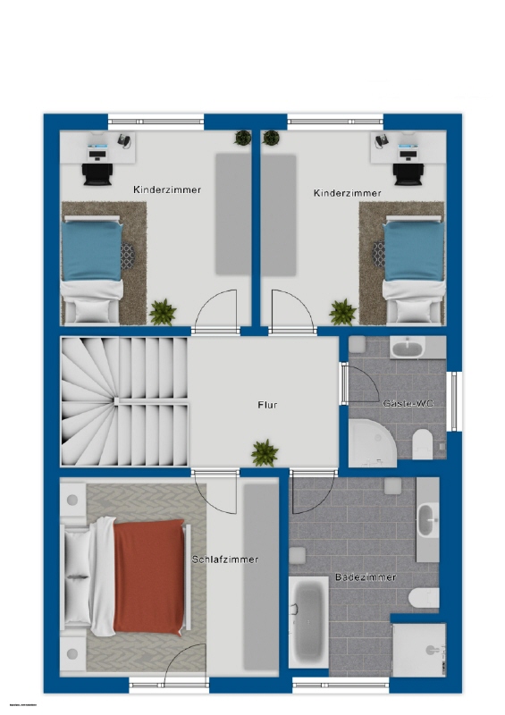 Im Obergeschoss stehen drei Schlafzimmer zur Verfügung, die sich flexibel nutzen lassen – ob als Elternschlafzimmer, Kinderzimmer oder Homeoffice. Zwei Bäder bieten hier zusätzlichen Komfort, darunter ein modernes Duschbad, das sich hervorragend als Kinder- oder Gästebad eignet.