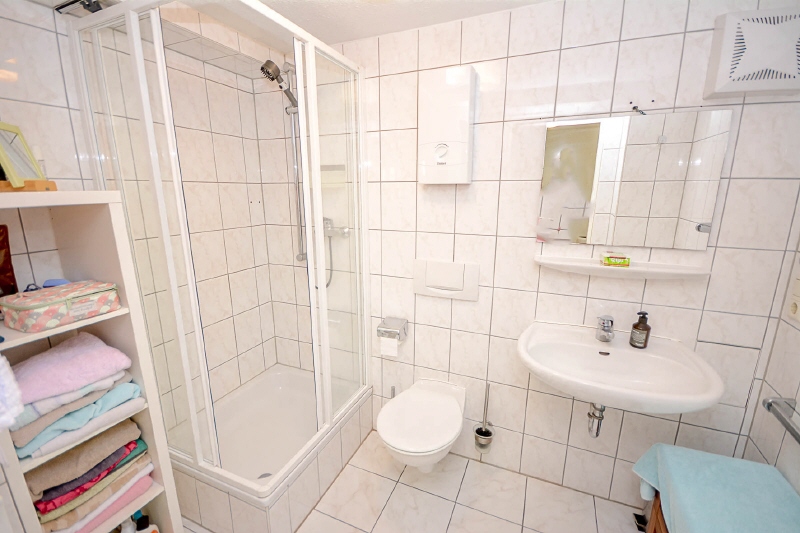 In der unteren Wohnung wurden die Kunststofffenster im Jahr 2002 eingebaut, während in der oberen Einheit Holzfenster aus dem Jahr 1981 vorhanden sind. Die Warmwasserversorgung wird über Durchlauferhitzer gewährleistet. Die Bäder beider Wohnungen wurden vor etwa 20 bis 25 Jahren modernisiert.
