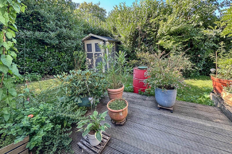 Die untere Wohnung ist als Maisonette gestaltet. Auf der Eingangsebene befinden sich ein geräumiges Wohn- und Esszimmer, eine separate Küche, ein Wannenbad sowie zwei Schlaf- bzw. Kinderzimmer. In der unteren Ebene bietet die Wohnung ein weiteres Duschbad, ein wohnraumähnlich ausgebautes Zimmer sowie diverse Kellerräume. Darüber hinaus verfügt diese Wohneinheit über einen eigenen Garten, der zusätzlichen Wohn- und Erholungswert bietet.